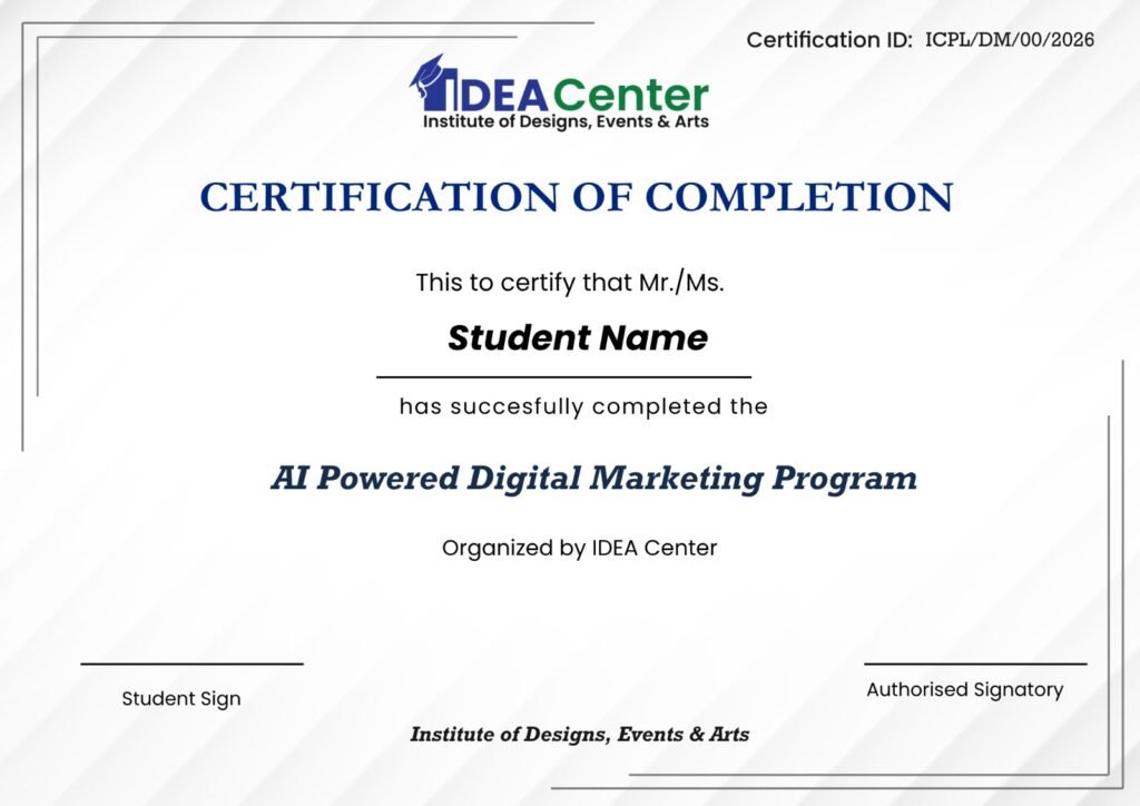 At IDEA Center, we believe in learning by doing. We offer hands-on training in event planning, digital marketing, PR, photography, and travel & tourism. If you’re looking for a practical, career-focused training institute in Delhi NCR, your journey starts right here.